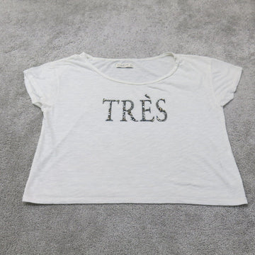 Abercrombie & Fitch Women T Shirt Top Cap Sleeve Round Neck Heather White Size L