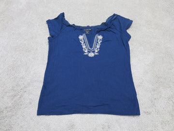 Abercrombie & Fitch Womens Blouse Top Cap Sleeve V Neck 100% Cotton Blue Large