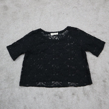 Abercrombie & Fitch Womens Crop Blouse Top Lace Short Sleeve Black Size Small
