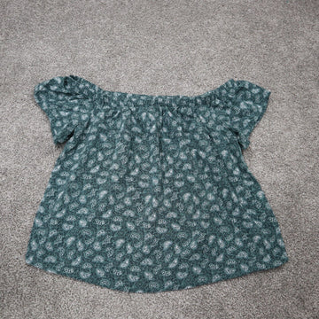 Abercrombie & Fitch Womens Off The Shoulder Blouse Top Paisley Print Green Sz S