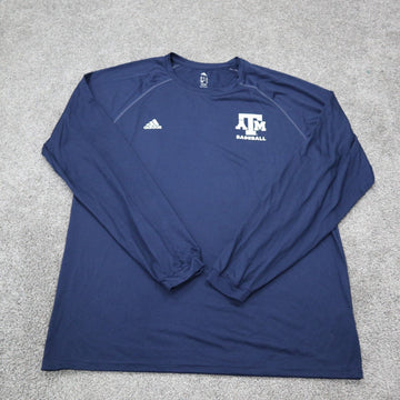 Adidas Climalite Men Crew Neck T Shirt ATM Baseball Long Sleeves Navy Blue SZ XL