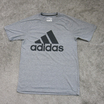 Adidas Mens Graphics Logo T Shirt Short Sleeves Round Neck Gray Black Size M