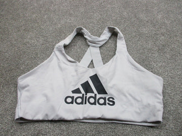 Adidas Sports Bra Women Size ? White Sleeveless Big Logo Front Adjustable Strap