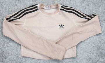 Adidas Womens Activewear Sweatshirts Cropped Long Sleeve 3 Striped Pink Size XS
