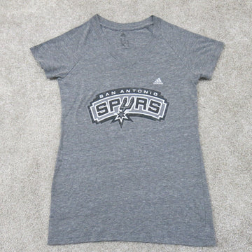 Adidas Womens Pullover T Shirt Short Sleeve V Neck Graphic Print Gray SZ Medium