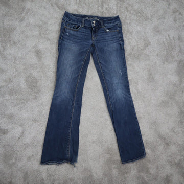 American Eagle Outfitters Jeans Women Sz 4 Blue Airflex Straight Leg Denim Logo