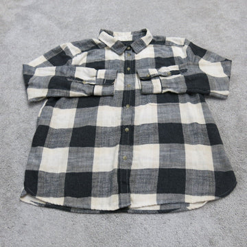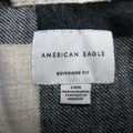 American Eagle Women Check Button Up Shirt Long Sleeve Boyfriend Fit Black SZ L