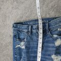 American Eagle Women Skinny Jeans Distressed Super Stretch Mid Rise Blue 00 Reg