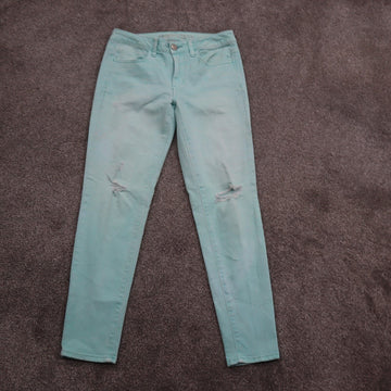 American Eagle Womens Super Stretch Skinny Leg Jeans Distressed Aqua Blue SZ W30