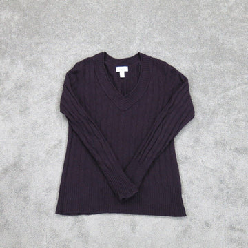 Ann Taylor Loft Womens Sweater V Neck Cable Knit Long Sleeve Maroon Size Small