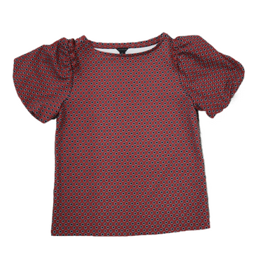 Ann Taylor Women Blouse Top Boot Neck Short Sleeve Floral Red Size X Small