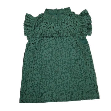 Ann Taylor Women Crochet Blouse Top Crew Neck Ruffle Sleeve Green Size XX Small