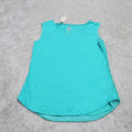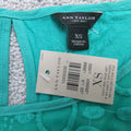 Ann Taylor Women Embroidered Blouse Top Crew Neck Back Keyhole Aqua Blue Size XS