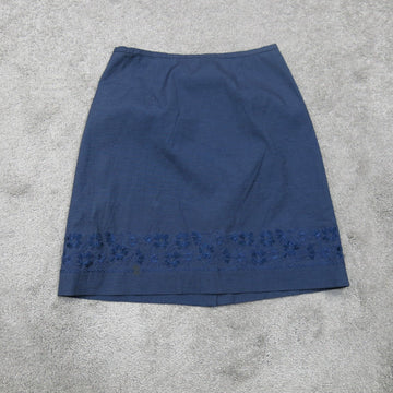 Ann Taylor Women Embroidered Straight Pencil Skirts Pull on Back Zip Blue SZ 12