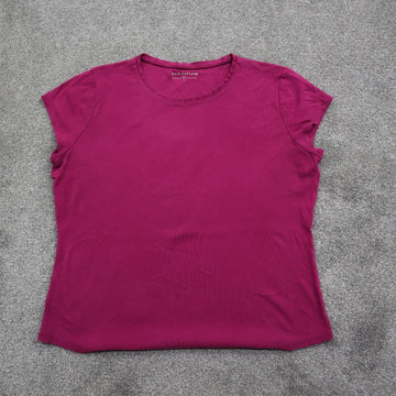 Ann Taylor Women T Shirt Top 100% Cotton Crew Neck Short Sleeve Dark Pink Size L