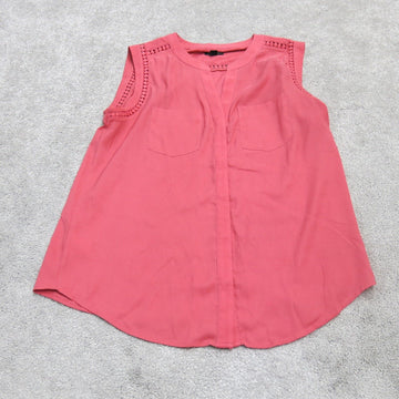 Ann Taylor Women Tank Blouse Split Neck Sleeveless Front Pockets Red Pink Small