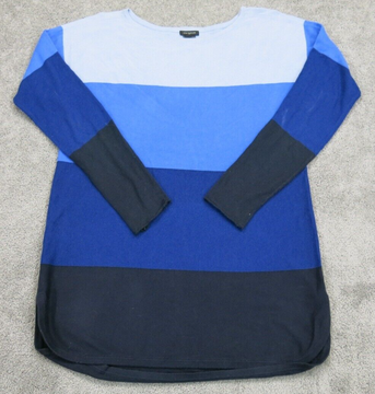 Ann Taylor Womens Striped Pullover Sweatshirt Long Sleeve Navy Blue Size Small