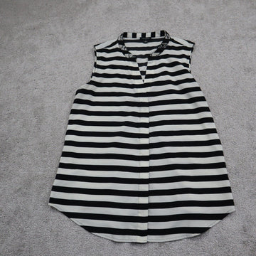 Ann Taylor Womens Striped Tank Blouse Top Sleeveless Black White Size Small