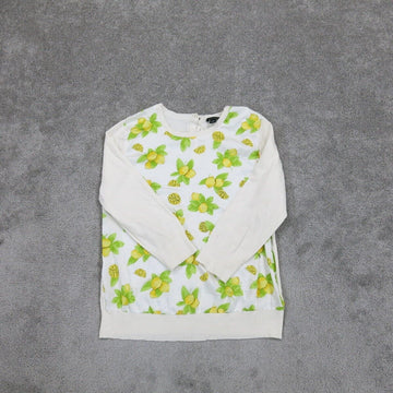 Ann Taylor Womens Sweatshirt Crew Neck Back Button Long Sleeve Floral White SZ M