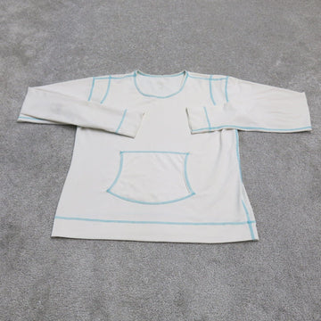 Athleta Womens Compression Top Long Sleeves Crew Neck Pocket White Blue SZ Small