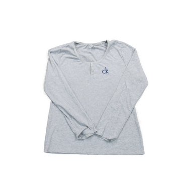 Calvin Klein Womens Henley Sweater Long Sleeves Round Neck Light Gray SZ X Large