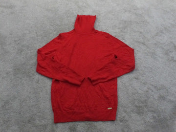 Calvin Klein Womens Pullover Sweater Knitted Long Sleeves Turtle Neck Red Size M
