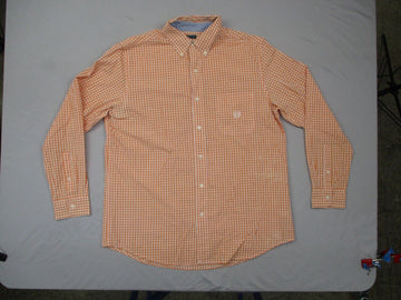 Chaps Mens Button Check Down Shirt Long Sleeve Collar Logo Orange White SZ Large