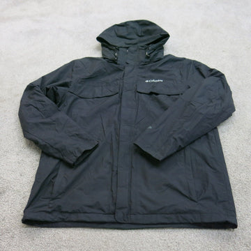 Columbia Jacket Mens Large Black Waterproof Hooded Windbreaker Outdoor Parka