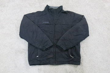Columbia Jacket Mens Medium Black Windbreaker Full Zip Up Fleece Logo Outdoor