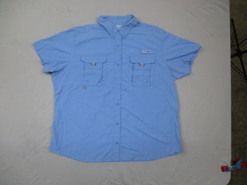 Columbia Mens Button Down Shirt Short Sleeves Chest 2 Pocket Blue Size 1X