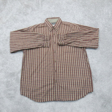 Columbia Sportswear Mens Check Button Down Shirt 100% Cotton Brown Size Medium