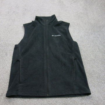 Columbia Women Full Zip Vest Jacket Fleece Sleeveless Mock Neck Logo Black SZ M
