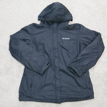 Columbia Women Full Zip Windbreaker Hooded Jacket Long Sleeve Pockets Black SZ L