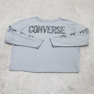 Converse Womens Graphics Sweatshirt Top Long Sleeve Round Neck Gray Size Large