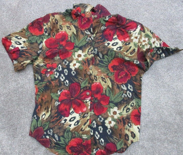 Cristin Heaven's Floral Button Up Shirt Women's Large Multicolor Short Sleeves
