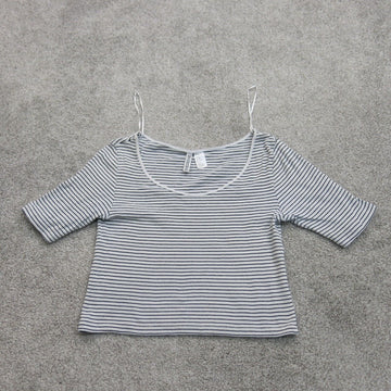 Divided by H&M Womens Scoop Neck knitted Top Short Sleeve Stripe White Size US M
