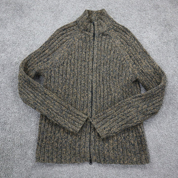 Express Women Full Zip Sweater Knitted Long Sleeves Mock Neck Brown Black Medium