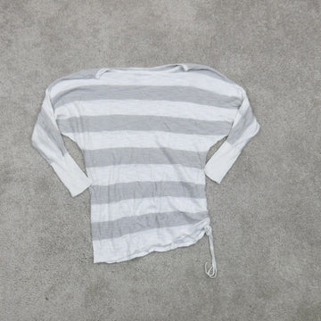 Express Womens Pullover Sweater 3/4 Sleeves Striped Gray White Size X Small