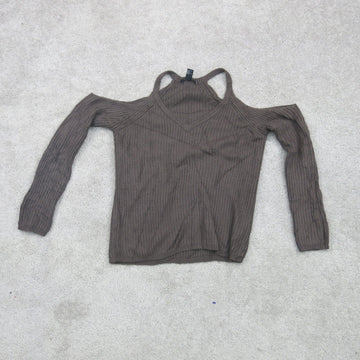 Forever 21 Womens Cold Shoulder Sweater Knitted Long Sleeves Brown Size Small