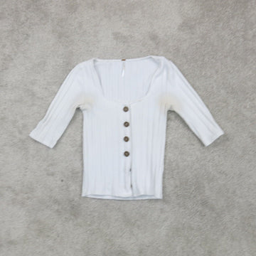 Free People Womens Cardigan Sweater Front Button 3/4 Sleeves White Size Small