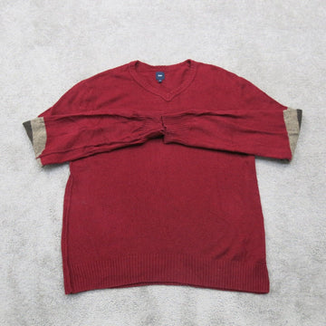 GAP Mens Knitted Pullover Sweater Long Sleeves V Neck Cotton Red Size Large