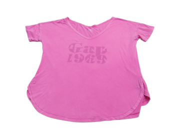 Gap Womens Blouse Short Sleeves V Neck Side Slit Graphic Tee Pink Size Large