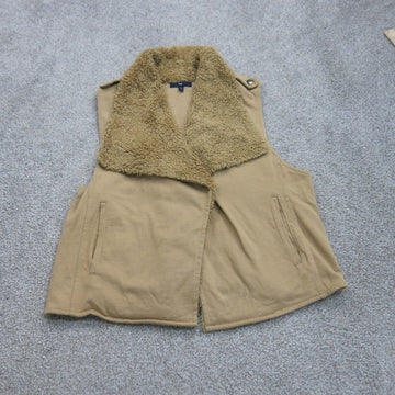 GAP Womens Full Zip Up Coat Jacket Sleeveless Collared Tan Khaki Size Medium