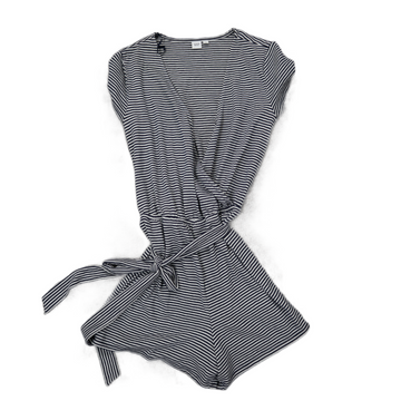 Gap Womens Wrap Mini Dress Cap Sleeve Tie Waist Striped Black White Size Medium
