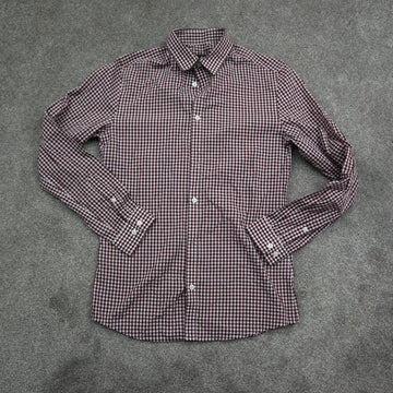 H&M Mens Button up Shirt Slim Fit Gingham Long Sleeves Maroon White Size Small