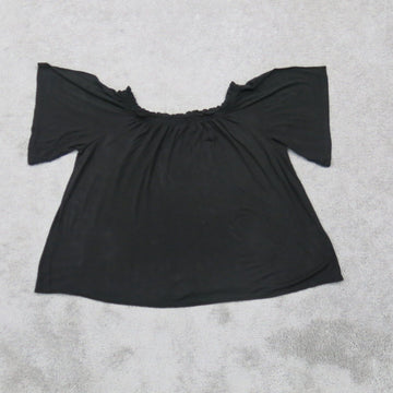 H&M Women Casual Blouse Top Cap Sleeve Square Neck Solid Black Size Small