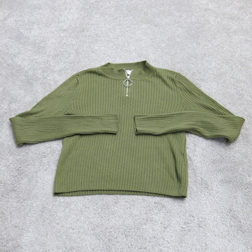 H&M Womens 1/4 Zip Sweatshirt Top Long Sleeve Mock Neck Olive Green US 10-12Y