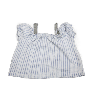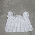 H&M Womens Blouse Top Cold Shoulder Sleeve Striped 100% Cotton White Blue Size M