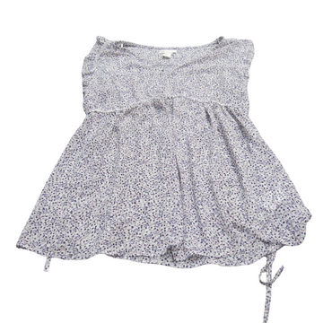 H&M Womens Blouse Top Sleeveless Ruffle Detail V Neck Floral White Blue Size M
