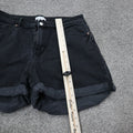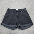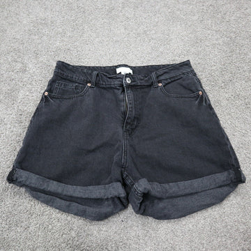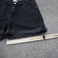 H&M Womens Boyfriend Jeans Shorts Roll Hem High Rise 100% Cotton Black US 12